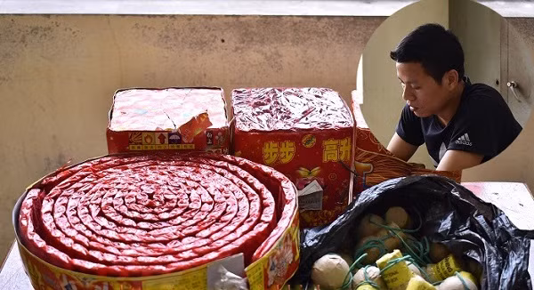 Tại thời điểm kiểm tra, Lập đang tàng trữ trái phép 2 bánh pháo nổ dài 10 mét, 3 dàn pháo hoa loại 36 quả, 33 quả pháo trứng có trọng lượng 7,4 kg.