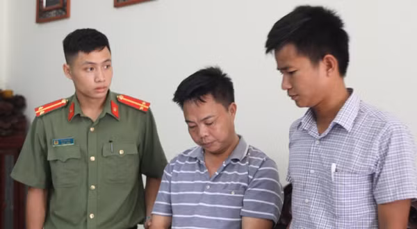 CQĐT thực hiện biện pháp tố tụng đối với đối tượng Nguyễn Đức Trọng (giữa)