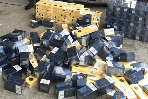 Tại đây, tổ công tác phát hiện phía dưới sàn xe ô tô trên có có giấu 250 cây thuốc lá 555 tương đương 2.500 bao thuốc lá.