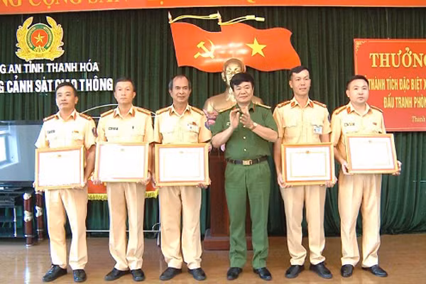 Đại tá Khương Duy Oanh - Phó Giám đốc Công an tỉnh Thanh Hóa đã tổ chức trao giấy khen của Giám đốc Công an tỉnh Thanh Hóa cho tập thể và cá nhân Phòng CSGT vì có thành tích trong đấu tranh với tội phạm ma túy