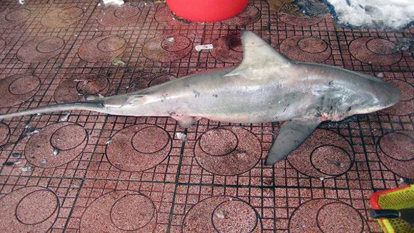 Nhiều người nhận định, khả năng đây là loài cá mập trắng (loài cá mập hung dữ nhất) vì giống hệt như các con cá mập trắng mà ngư dân bắt được trong năm 2011 và 2012. Các ngư dân cho biết con cá mập này có lẽ là con cá mập cái đang mang thai, vì vòng bụng nó to hơn so với những con cá mập bình thường khác.