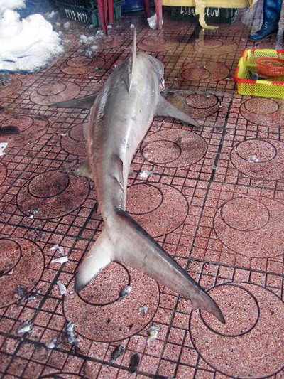 Điều đáng nói là con cá mập này được anh Bình thả rập ngay tại biển Quy Nhơn cách mép nước 500 – 600 m, và chỉ cách bãi tắm biển dọc đường Xuân Diệu chừng 500m. “Nếu không bắt được cá mập sẽ rất nguy hiểm cho những người tắm biển, vì con cá mập này vào sống ở vùng biển quá gần với bãi tắm” – anh Bình nói. Đến 8h sáng ngày 5-5, con cá mập này được anh Bình vận chuyển xuống Cảng cá Quy Nhơn ướp đá lạnh để rạng sáng ngày 6-5 bán cho thương lái.