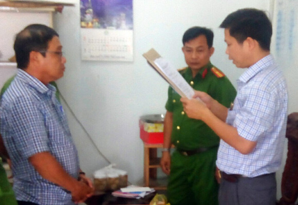 Thực hiện lệnh bắt ông Trần Văn Tâm (bìa phải)