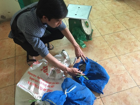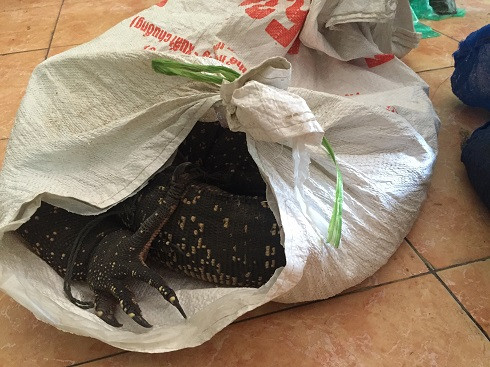 3 cá thể tê tê khoảng 14 kg , 1 cá thể kỳ đà nặng khoảng 12kg được các đối tượng buộc chân, chứa trong các bao tải gai và đặt trong các thùng xốp, vận chuyển từ Hà Tĩnh ra Hà Nội để bán.