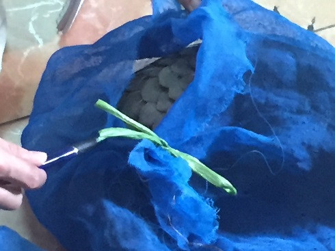 Mỗi cá thể tê tê được buộc chân chứa trong từng túi gai