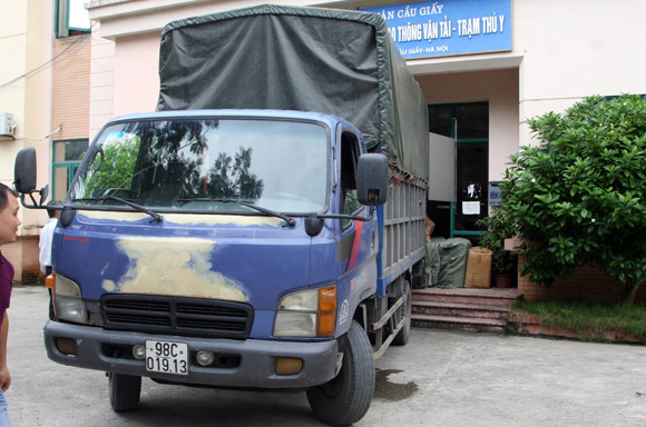 Tại chân cầu Thanh Trì, Đoàn công tác kiểm tra chiếc xe tải mang BKS: 98C - 109.13, do Trần Văn Sơn (SN 1982, ở huyện Quảng Yên, tỉnh Quảng Ninh) điều khiển khi đang dừng đỗ chờ xe khác để sang hàng.