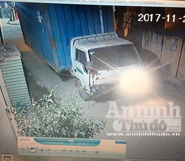 Chiếc xe tải chờ thùng container trộm cắp được bị camera an ninh ghi lại