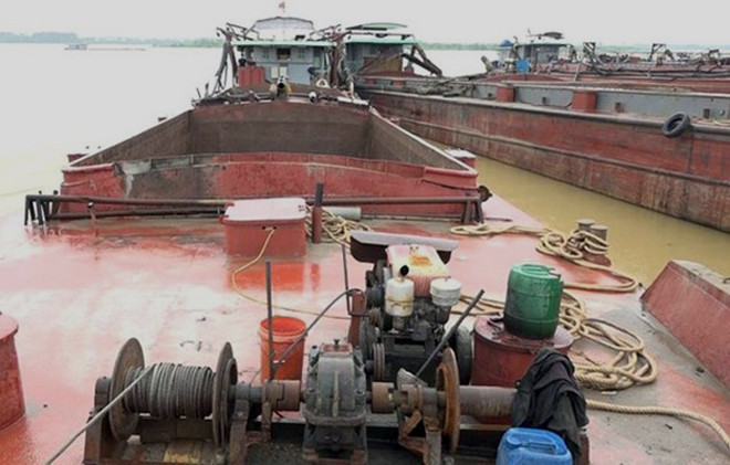 Qua kiểm tra, trên tàu có 3 người gồm: Nguyễn Văn Hải (SN 1966), Nguyễn Văn Dũng (SN 1992) và Nguyễn Thị Thảo (SN 1992), cùng trú tại xã Tân Châu, huyện Khoái Châu, tỉnh Hưng Yên). Phương tiện lắp đặt 2 hệ thống đầu nổ, ống hút công suất lớn sử dụng để khai thác cát trái phép; trong khoang chứa tàu có khoảng 50m3 cát đen mới khai thác được.