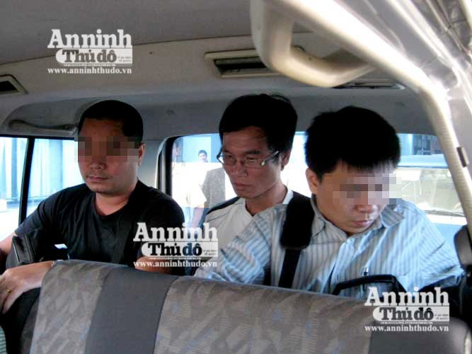 Đối tượng Vũ (thứ 2 từ phải sáng), đang được dẫn giải từ sân bay Quốc tế Nội bài về Phòng CSHS
