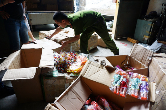 Tại phòng 503, lực lượng chức năng phát hiện, thu giữ 30 thùng car-ton chứa sản phẩm đồ chơi trẻ em gồm: búp bê, ô tô, máy bay, con giống các loại…. Toàn bộ số hàng trên do Trung Quốc sản xuất, không có hoá đơn chứng từ. Lô hàng đồ chơi được xác định chủ sở hữu là bà Nguyễn Thu Hiền (SN 1970). Qua khai thác ban đầu, bà Hiền khai nhận thuê kho để chứa hàng cung cấp cho các ki ốt trong chợ Đồng Xuân và bán buôn cho các chủ hàng tỉnh lân cận.