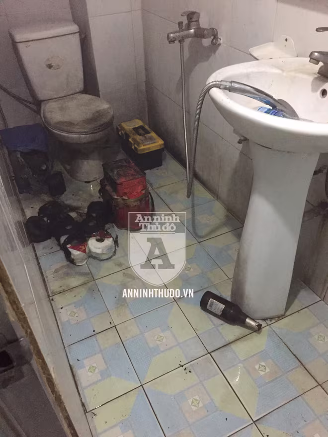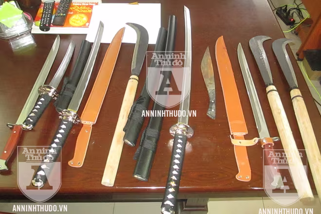 Trong căn phòng "boong-ke" của Trần Quốc Hoàng, cảnh sát phát hiện đối tượng này giấu một khẩu súng ngắn dưới đệm, cùng rất nhiều dao, kiếm sắc nhọn khắp phòng. Cùng với đó là những bộ dụng cụ "đập đá" để la liệt.