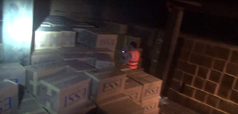 Lực lượng Hải quan kiểm tra hầm chứa thuốc lá lậu