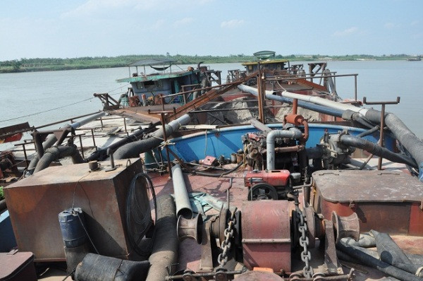 Trên mỗi tàu chứa khoảng 500m3 cát. Trên bãi tập kết có khoảng 30.000m3 cát. Hai tàu trên được lắp đặt trái phép hệ thống máy hút hiện đại, mỗi giờ hút được khoảng 500m3 cát.