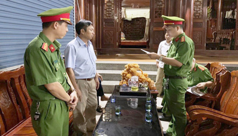 Cơ quan CSĐT Công an tỉnh Nghệ An đọc lệnh bắt khẩn cấp và khám xét nơi ở của ông Sơn