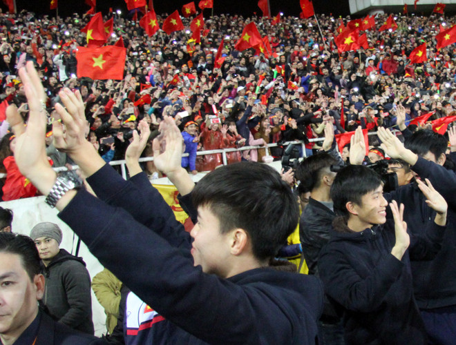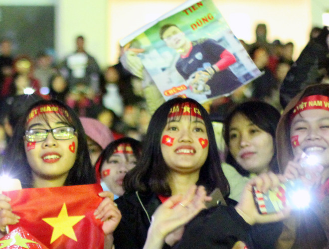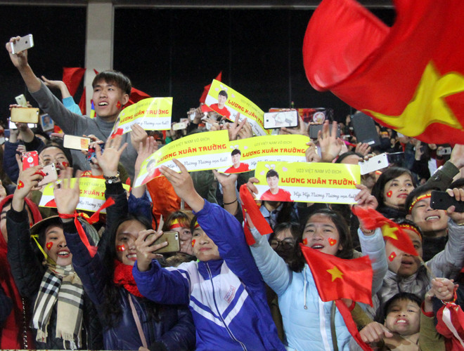 ANTD.VN - Giữa không khí cuồng nhiệt trên sân Mỹ Đình tối 28-1, nhiều người hâm mộ đã bật khóc vì xúc động và hạnh phúc khi chứng kiến những "người hùng" U23 Việt Nam bằng xương bằng thịt.