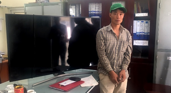 Đối tượng Toàn và chiếc tivi trộm cắp được tại nhà dân ở thị trấn Sóc Sơn