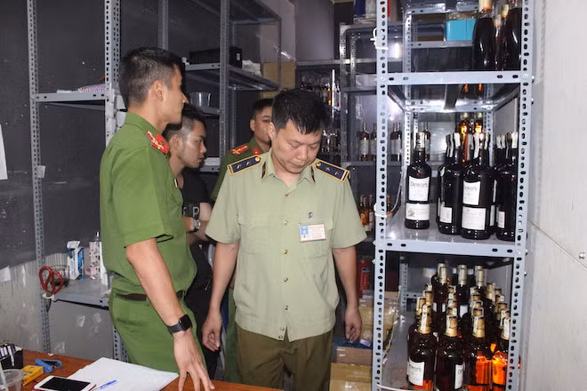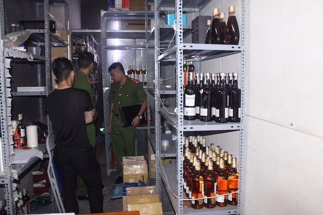 Tiến hành kiểm tra kho rượu tại quán Bar Star3, lực lượng chức năng phát hiện nhiều rượu do nước ngoài sản xuất không có tem, nhãn, mác