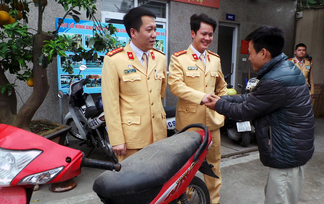 Sau khi trao trả chiếc xe cho anh Tâm, cán bộ Đội CSGT số 6 đã hướng dẫn anh làm các thủ tục để được cấp lại biển số cho chiếc xe.