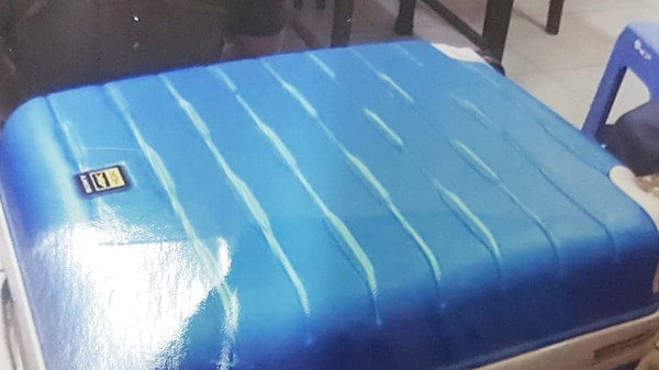 Chiếc va ly màu xanh chứa 40 bánh heroin (Ảnh cơ quan công an cung cấp)