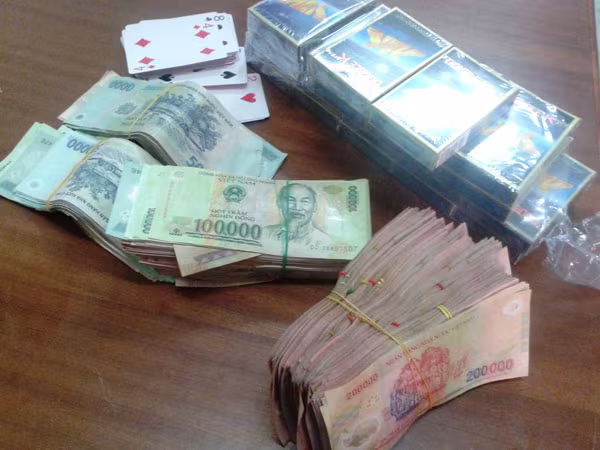 Số tiền mà lực lượng công an thu giữ được tại chiếu bạc