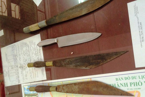 Số dao mà cơ quan công an thu giữ được ở nhà của Hải