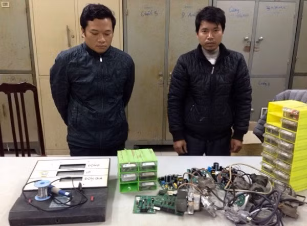 Theo CQĐT, đầu năm 2014, thông qua Tuấn, đối tượng Phong và Toàn đã sản xuất và bán 3 chíp điện tử cho cửa hàng xăng dầu Trần Khát Chân với giá 25 triệu đồng/bộ chíp điện tử và điều khiển từ xa…