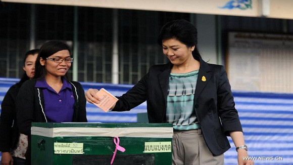 Ngay trong buổi sáng, Thủ tướng tạm quyền Yingluck Shinawatra đã đi bỏ phiếu tại điểm bầu cử ở trường Klong Lam Chiak gần tư dinh của bà tại khu vực Ladprao ở Bangkok trước sự đảm bảo an ninh chặt chẽ của cảnh sát và binh lính.