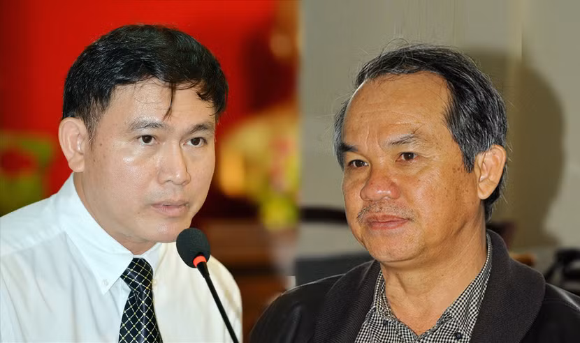 Chủ tịch VPF Trần Anh Tú (trái) cho rằng mình không có lỗi nếu bầu Đức bỏ giải