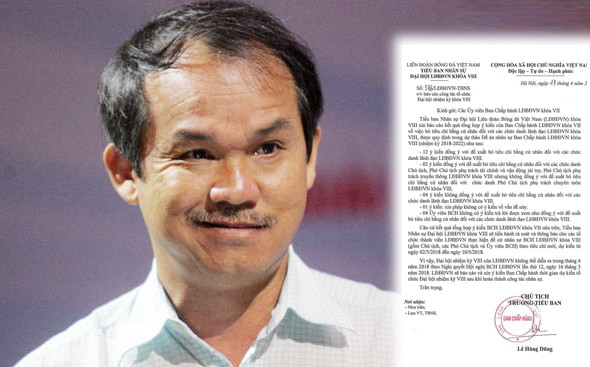 Ngày 27-4, Chủ tịch Liên đoàn Bóng đá Việt Nam (VFF) kiêm Trưởng tiểu ban nhân sự đại hội khóa VIII đã ký công văn gửi tới các ủy viên Ban chấp hành, thông báo về kết quả tổng hợp ý kiến về việc bỏ tiêu chí "ứng viên chủ tịch, phó chủ tịch" phải có bằng đại học.