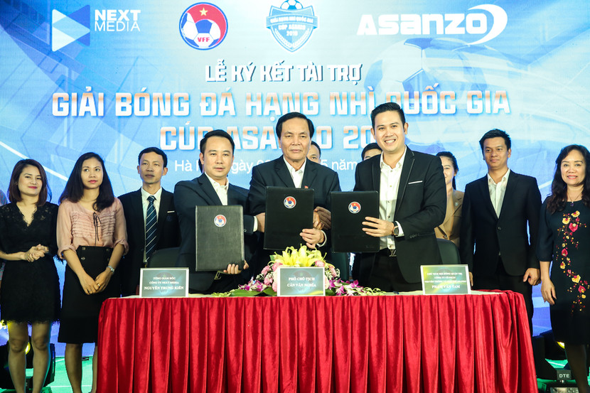 Chiều 6-5, tại trụ sở Liên đoàn bóng đá Việt Nam (VFF) diễn ra Lễ ký kết và công bố nhà tài trợ chính của Giải bóng đá hạng Nhì quốc gia – Cúp Asanzo 2019 giữa VFF, Công ty Cổ phần Giải pháp truyền hình thế hệ mới (Next Media) và Tập đoàn điện tử Asanzo.