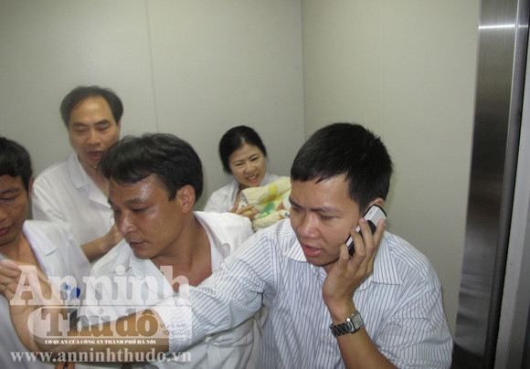 Phải rất vất vả cháu bé mới được bế vào thang máy, lên tầng 6, nơi có phòng họp chính