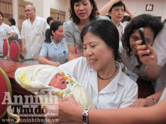 Vào khoảng 16h40 phút chiều nay (8-11) sau những giây phút chờ đợi đến nghẹn thở của hàng nghìn người, (trong đó có phần nhiều là y bác sỹ Bệnh viện phụ sản TƯ), chiếc xe chuyên dụng của Phòng CSHS – CATP Hà Nội chở theo bé Trường tiến vào khuôn viên bệnh viện. Phải mất hơn 30 phút ổn định tình hình kêu gọi đám đông đứng giãn ra các chiến sỹ CSHS mới trao được cháu bé cho bác sỹ Trần Tuyết Lan, Trưởng khoa sản 2, nơi cháu bé bị mất tích mất 5 này qua.