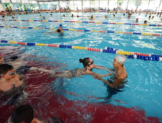 ANTD.VN - Các bể bơi trong nhà đang là lựa chọn của nhiều gia đình trong những ngày nắng nóng ở Hà Nội thay vì đến các bể bơi ngoài trời. Những bể bơi trong nhà tuy có mức giá cao hơn nhưng lại được nhiều người dân lựa chọn do có thể bơi trong nhiều khung giờ mà không sợ nắng nóng, cùng vì đó là sự an toàn, cũng như chất lượng của những bể bơi này.