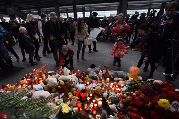 Hàng trăm người đã tập trung tại sân bay Pulkovo, Nga để tưởng niệm các nạn nhân