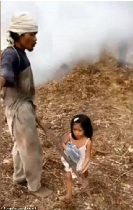 Những hình ảnh về cảnh Jenny đi chân trần dắt cha mình đến địa điểm làm việc, lấy nước cho ông uống trước khi người bố bắt đầu làm việc, đã được Rhuby Capunes quay lại và đăng tải lên facebook hôm 10-6 thu hút 2,5 triệu lượt xem.