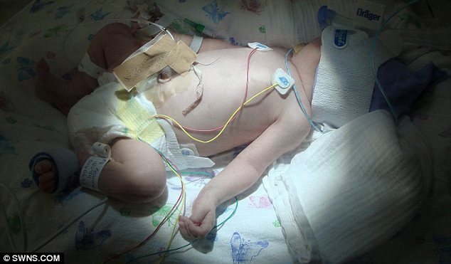 Ngay khi được sinh ra, các bác sĩ đã phải cấp cứu trong 2 giờ để cứu sống bé bằng cách truyền máu cho làn da bé dần trở lại hồng hào.