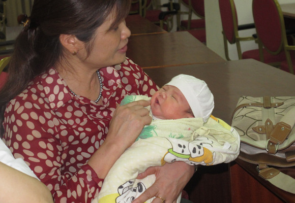 Ban đầu, gia đình anh Chiều định xin cho hai mẹ con ra viện vào ngày 10-11. Tuy nhiên, vào chiều ngày 9-11 cháu Hà bỗng bị sốt, lúc cao nhất lên đến 38,7 độ; nên được các bác sỹ chuyển vào khoa Sơ sinh để theo dõi, chăm sóc. Ngoài ra chị Thơm cũng vẫn phải tiêm kháng sinh vì còn dịch trong dạ con.