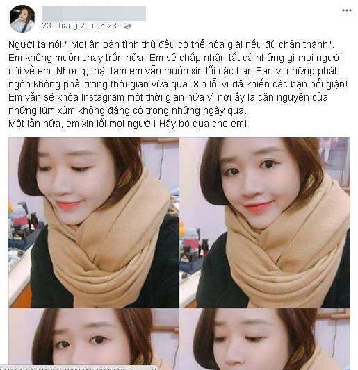 “Một lần nữa, em xin lỗi mọi người. Hãy bỏ qua cho em!” – bạn gái Xuân Trường ân hận viết.