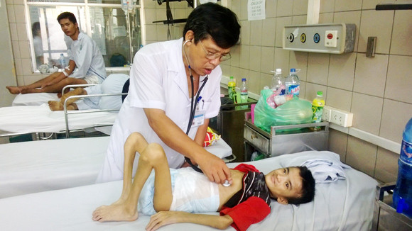TS. Nguyễn Kim Sơn, Phó Giám đốc Trung tâm Chống độc cho biết, anh Kiên nhập viện cách đây hơn 1 tuần, trong tình trạng co giật và tiêu chảy kéo dài, bị suy gan, suy thận, rối loạn nước và điện giải. Lúc đầu, gia đình cũng như các bác sĩ đều nghĩ anh bị ngộ độc thức ăn, tuy nhiên sau khi khám, xét nghiệm thì chẩn đoán bệnh nhân bị suy kiệt nặng, kéo dài do kém hấp thụ, kèm thêm 2 mắt gần như đã bị hỏng, không nhìn được do đục thủy tinh thể.