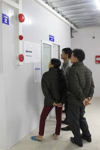 Người nhà bệnh nhân đọc nội quy nhà lưu trú dán ngoài phòng làm thủ tục