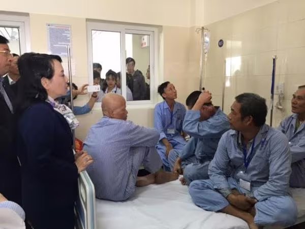 Bộ trưởng Bộ Y tế Nguyễn Thị Kim Tiến chứng kiến cảnh 4 bệnh nhân nằm ghép chung 1 giường bệnh tại Bệnh viện K (cơ sở 3)
