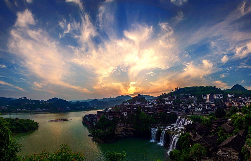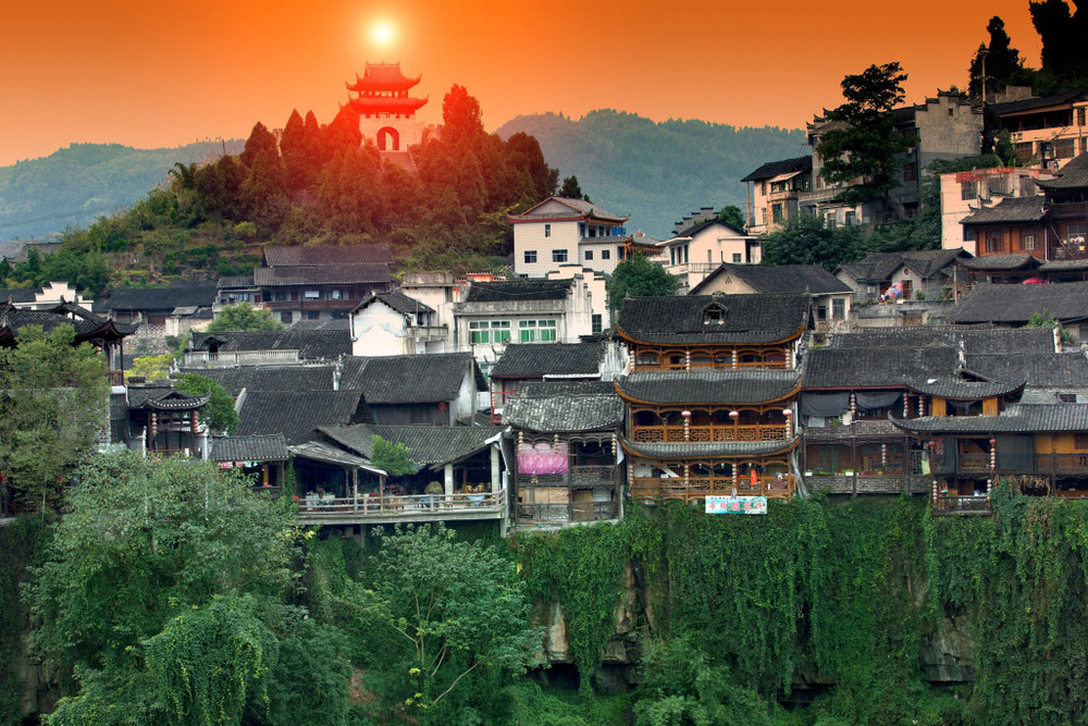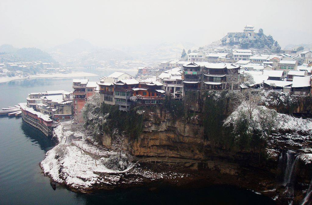 ANTD.VN - Phù Dung trấn là thị trấn hơn 2.000 năm tuổi, nằm tựa lưng vào dãy núi Sùng Sơn, Hồ Nam (Trung Quốc). Nhìn từ xa, Phù Dung sừng sững như treo mình trên thác nước hùng vĩ ngày đêm tung bọt trắng xoá.