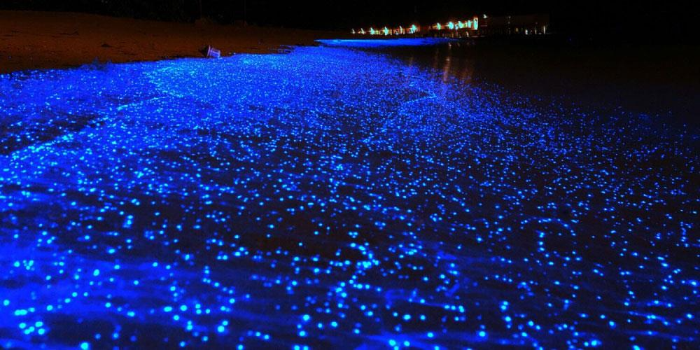 ANTD.VN - Khi màn đêm buông xuống, bãi biển thuộc đảo Vaadhoo ở Maldives sẽ biến thành dải sao lấp lánh với những đốm sáng xanh lam ảo diệu trên bờ biển, tạo ra một khung cảnh tưởng chừng như chỉ có trong những bộ phim viễn tưởng kỳ ảo như Avatar.