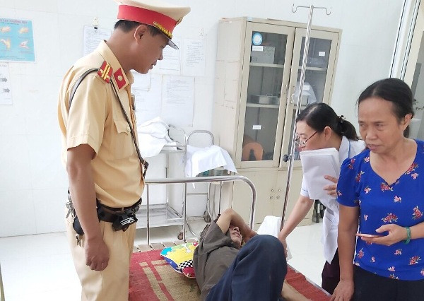 CSGT đưa ông Minh vào trạm y tế xã nhanh chóng cấp cứu đảm bảo an toàn tính mạng