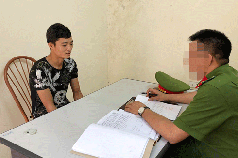 Đối tượng Long đang khai nhận hành vi phạm tội tại cơ quan công an