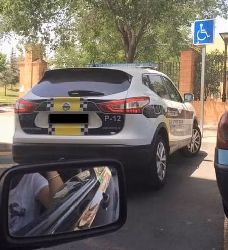 Người phụ nữ giấu tên ở thị trấn Petrer đã ghi lại hình ảnh một chiếc xe của cảnh sát địa phương đỗ tại khu vực dành cho người tàn tật, sau đó chia sẻ lên trang Facebook cá nhân với dòng mô tả mỉa mai: “Cứ đậu xe ở bất cứ nơi nào mà bạn muốn và không bao giờ lo bị phạt”.