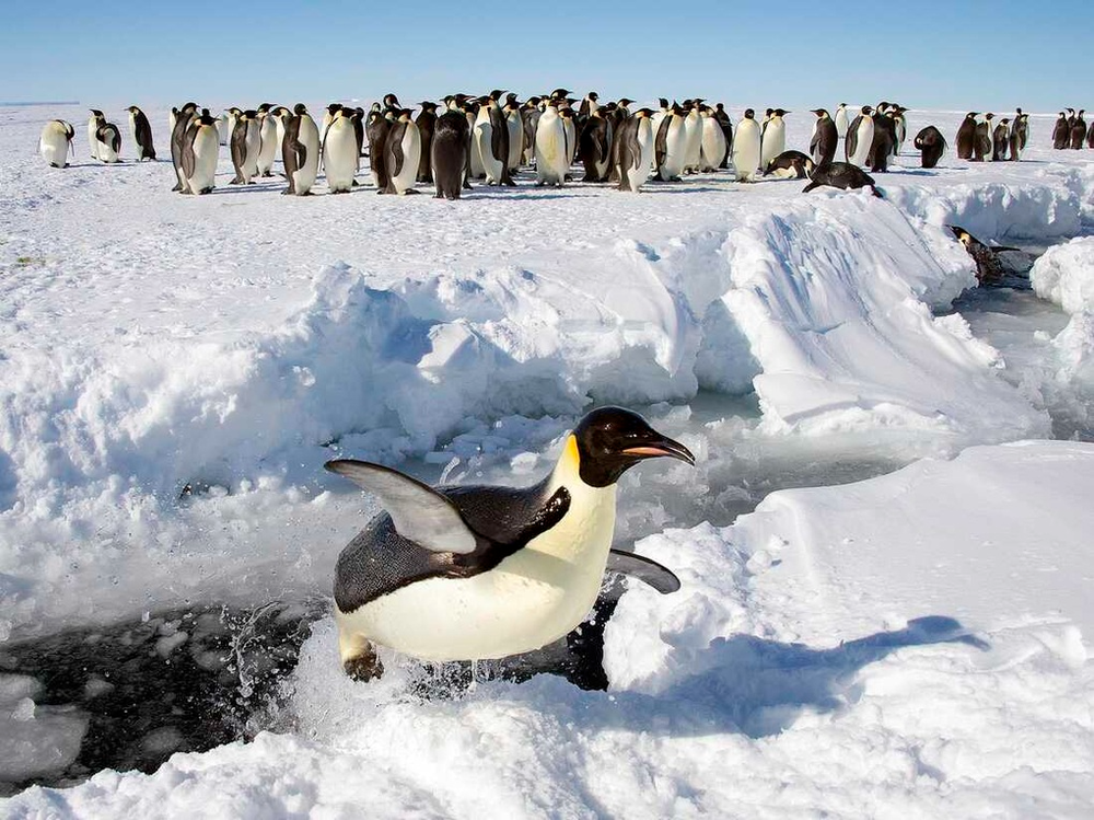 ANTD.VN - Mùa đông, Nam cực trở thành vùng đất lạnh lẽo nhất trái đất. Nhiệt độ thường xuống -50 độ C, khiến hầu hết trong số 9.000 loài chim phải tháo chạy về phương bắc ấm áp. Chỉ một loài duy nhất chim cánh cụt hoàng đế ở lại và sử dụng lục địa băng giá này làm nơi nuôi con. Chim cánh cụt hoàng đế biểu tượng của Nam cực đang có nguy cơ biến mất khỏi trái đất do những tác động xấu từ biến đổi khí hậu.