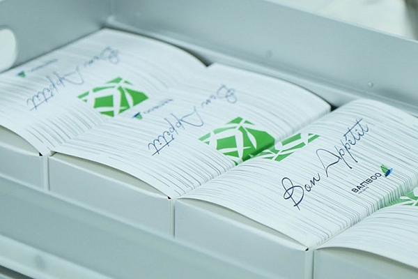 Bamboo Airways cũng triển khai chiến dịch Bay xanh - “Fly Green” với những bữa ăn được bài trí đẹp mắt trên những dụng cụ ăn thân thiện với môi trường, để hành khách không chỉ có một trải nghiệm dịch vụ tuyệt vời mà còn mang ý nghĩa thiết thực về mặt xã hội.