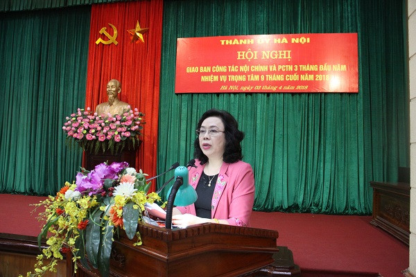 Phát biểu chỉ đạo tại hội nghị, Phó Bí thư Thường trực Thành ủy Hà Nội Ngô Thị Thanh Hằng đánh giá cao những kết quả mà toàn khối nội chính của thành phố đã đạt được 3 tháng vừa qua, giúp tình hình an ninh chính trị, TTATXH trên địa bàn Thủ đô tiếp tục được giữ vững, tội phạm được kéo giảm.