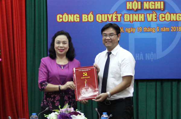 Phó Bí thư Thường trực Thành ủy Ngô Thị Thanh Hằng trao Quyết định của Ban Thường vụ Thành ủy cho đồng chí Nguyễn Văn Thắng